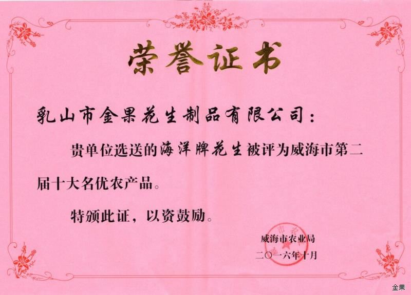 金果花生榮獲十大名優(yōu)農(nóng)產(chǎn)品稱號(hào)